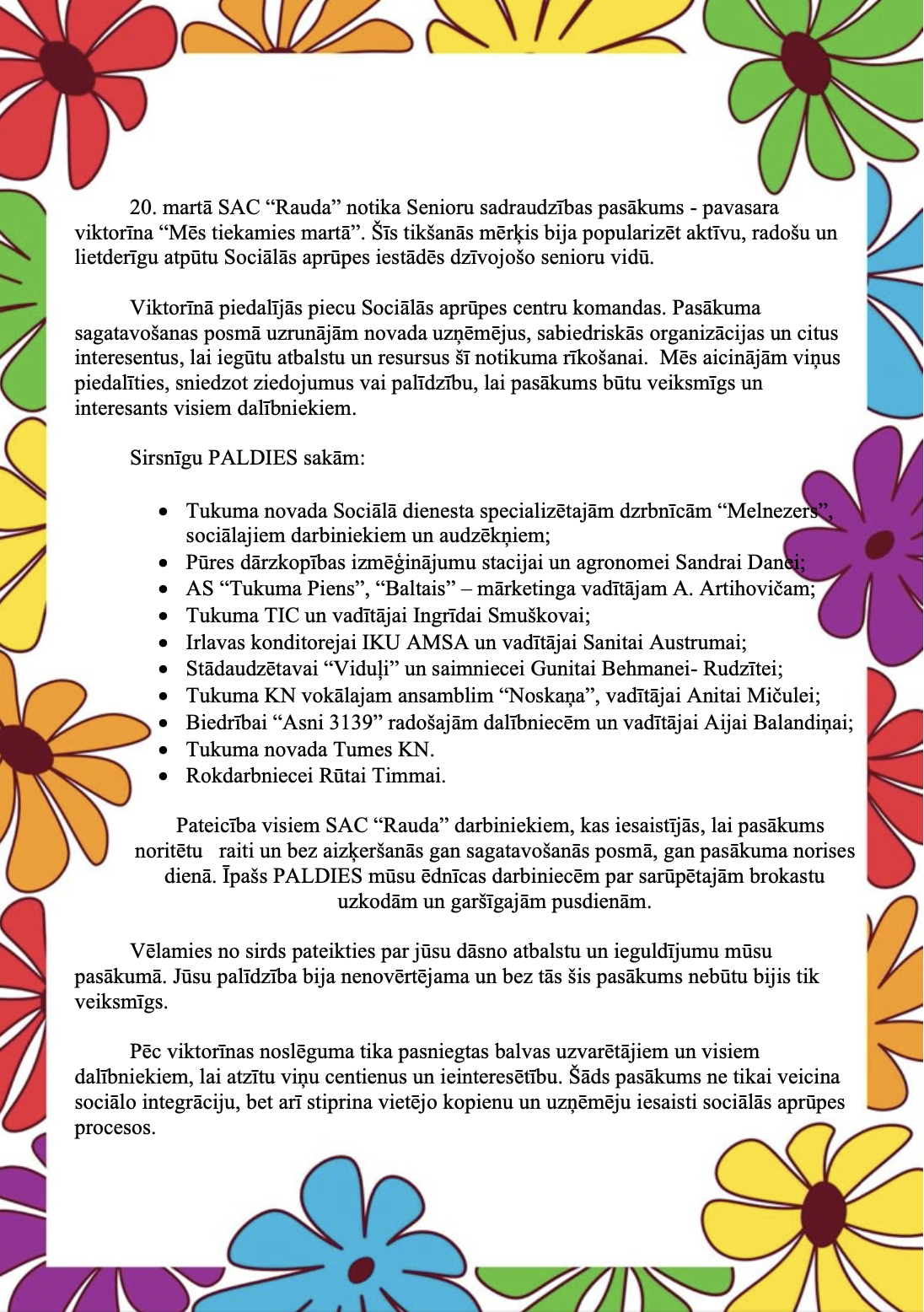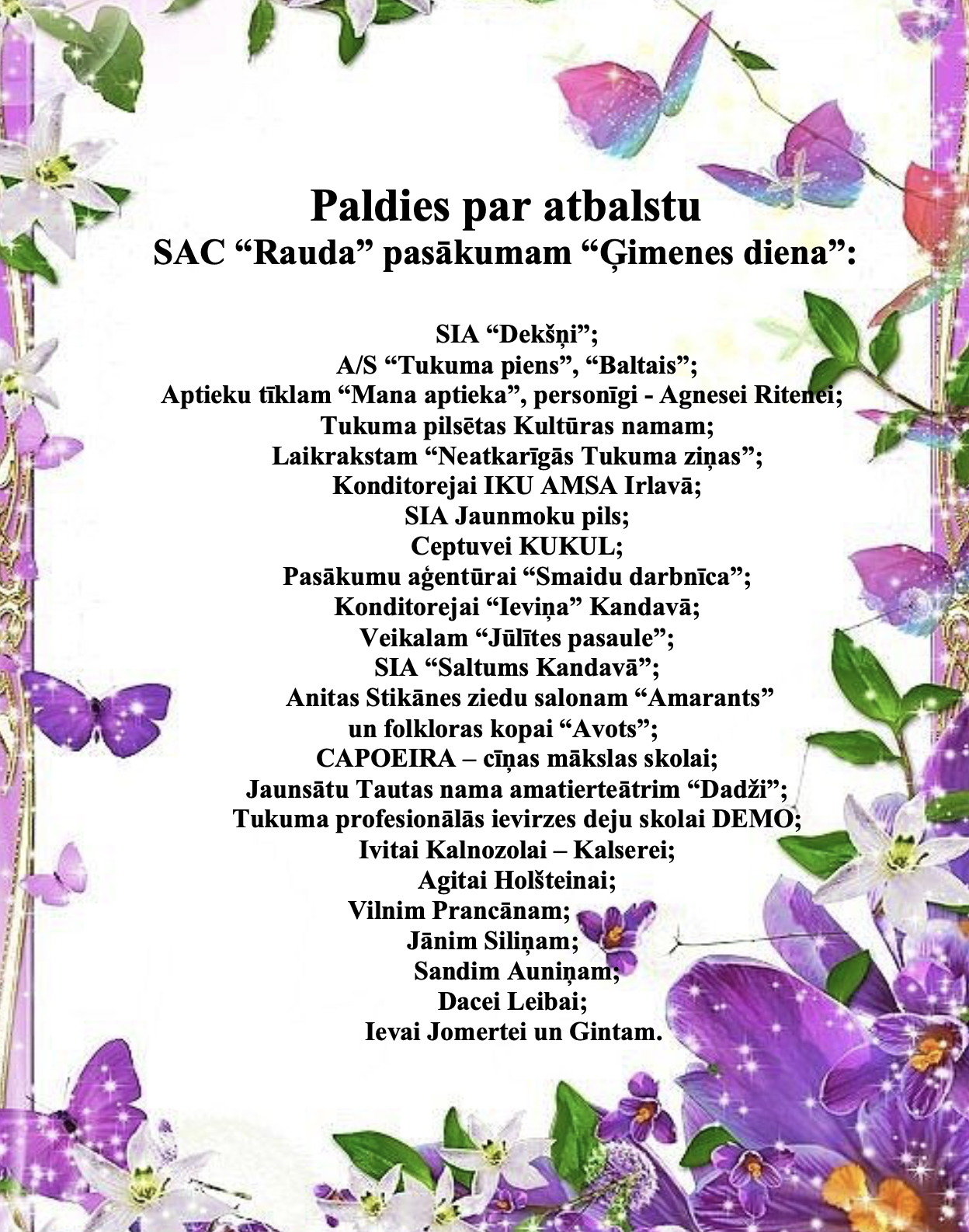 Par brīnišķīgajiem koncertiem un sarūpētajām Ziemassvētku dāvaniņām SAC “Rauda” klientiem.